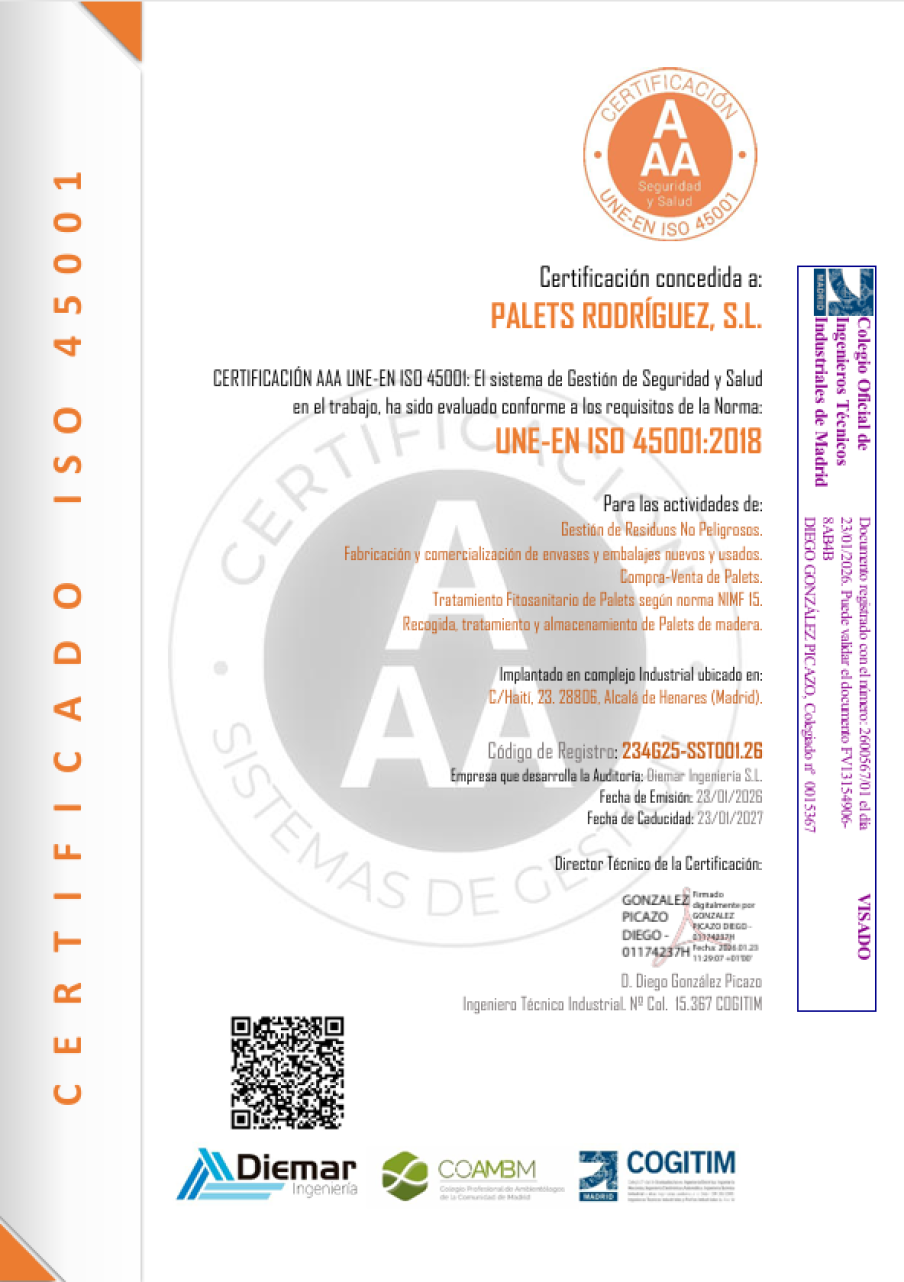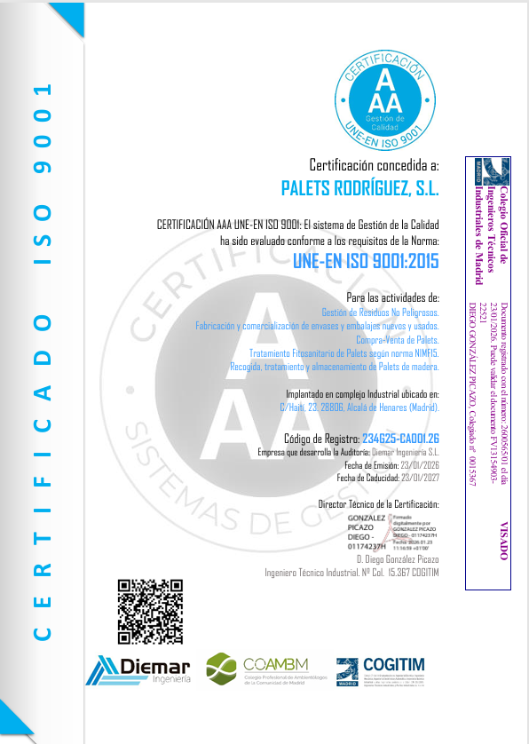 PALETS RODRÍGUEZ SL es una empresa autorizada por la Comunidad de Madrid para prestar los servicios de: