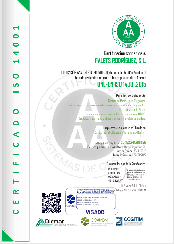 En caso de que los palets hayan quedado privados de uso viable debido a importantes degradaciones de los mismos, se procede a su gestión como residuos de madera, cuya operativa se desglosa en las siguientes etapas: