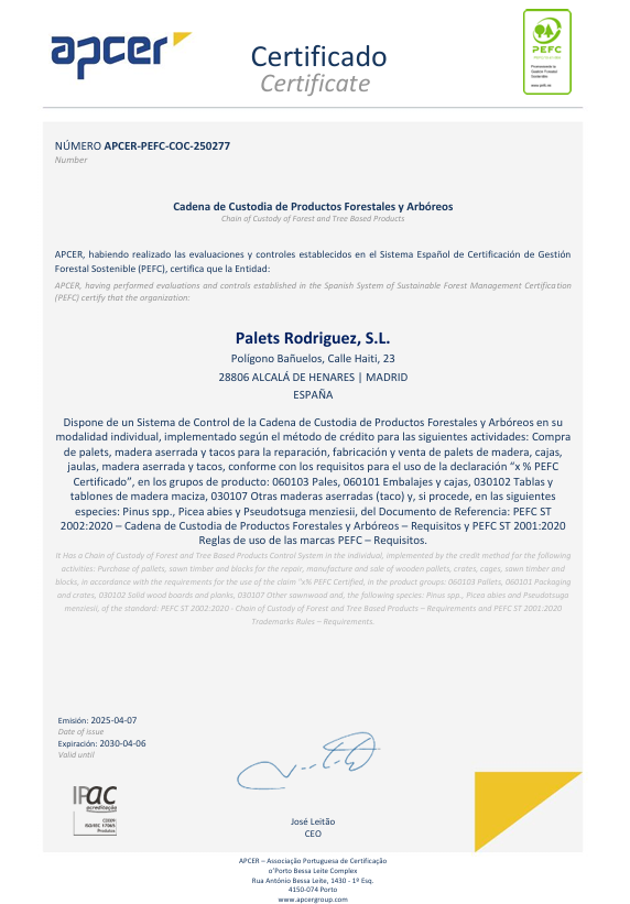 Nos complace anunciarles que nuestra empresa ha obtenido la certificación PEFC (Programa para el Reconocimiento de la Certificación Forestal). Esto significa que todos nuestros productos están hechos con madera proveniente de bosques gestionados de manera sostenible, garantizando la protección del medio ambiente, la vida silvestre y la seguridad de las comunidades forestales.